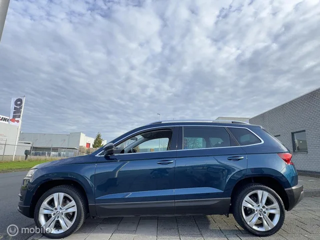 Skoda Karoq 1.5 TSI ACT Style Business|Camera Leer Carplay. Skoda Karoq 1.5 TSI ACT Style Business|Camera Leer Carplay. Kenteken: SJ-418-D; Merk: Skoda; Model: Karoq; APK tot: 12-11-2026; Tellerstand: 151240 KM; Carrosserievorm: SUV; Aantal deuren: 5; Brandstofsoort: Benzine; Bouwjaar: 2018; Transmissie: Automaat; Kleur: blauw; Motorinhoud: 1498 cc; Aantal cilinders: 4; Motorcode: DAD; Vermogen: 110 kW / 150pk; Ledig gewicht: 1293 kg; Max. trekgewicht: 1500 kg; Aantal zitplaatsen: 5; Verbruik: 5.6 l/100 km; BTW/Marge: Marge, de BTW is niet aftrekbaar; Lengte: 438 cm; Breedte: 184 cm; Aantal sleutels: 3; Onderhoudshistorie aanwezig: Ja; Motorrijtuigenbelasting: € 199 - 217 per kwartaal; Emissieklasse: Euro 6. Pakket: Travel pakket. Achteruitrij assistent; Cruise control adaptief; Dodehoek detectie; File assistent; Grootlichtassistent; Rijstrooksensor; Verkeersbord detectie. Pakket: Safety pakket. Bots herkenning en activatie; Zij airbag(s) achter. Comfort. Boordcomputer; Regensensor...
