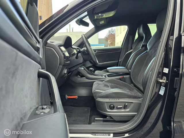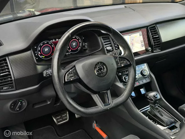 Origineel Nederlandse Skoda Kodiaq 1.5 TSI Sportline Business Automaat. Compleet met alle boekjes, 2 sleutels en NAP Tellerrapport. SKODA KODIAQ 1.5 TSI DSG SPORTLINE CAMERA VIRTUAL CARPLAY. Kenteken: H-768-ZD; Merk: Skoda; Model: Kodiaq; APK tot: 24-06-2026; Tellerstand: 143307 KM; Carrosserievorm: SUV; Aantal deuren: 5; Brandstofsoort: Benzine; Bouwjaar: 2020; Transmissie: Automaat 7-traps; Kleur: zwart Parelmoer; Bekleding: Leder/Alcantara; Kleur interieur: zwart; Motorinhoud: 1498 cc; Aantal cilinders: 4; Motorcode: DPC; Vermogen: 110 kW / 150pk; Ledig gewicht: 1481 kg; Max. trekgewicht: 1800 kg; Aantal zitplaatsen: 5; Verbruik: 5.8 l/100 km; BTW/Marge: BTW aftrekbaar, de prijs is inclusief BTW; Lengte: 470 cm; Breedte: 188 cm; Aantal sleutels: 2; Onderhoudshistorie aanwezig: Dealer onderhouden; Motorrijtuigenbelasting: € 241 - 264 per kwartaal; Emissieklasse: Euro 6; Velgmaat: 19 inch. Comfort. Boordcomputer; Cruise control; Regensensor. Exterieur. Buitenspiegel(s) automatisch...