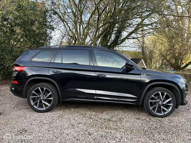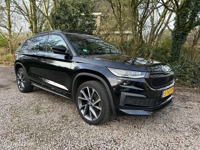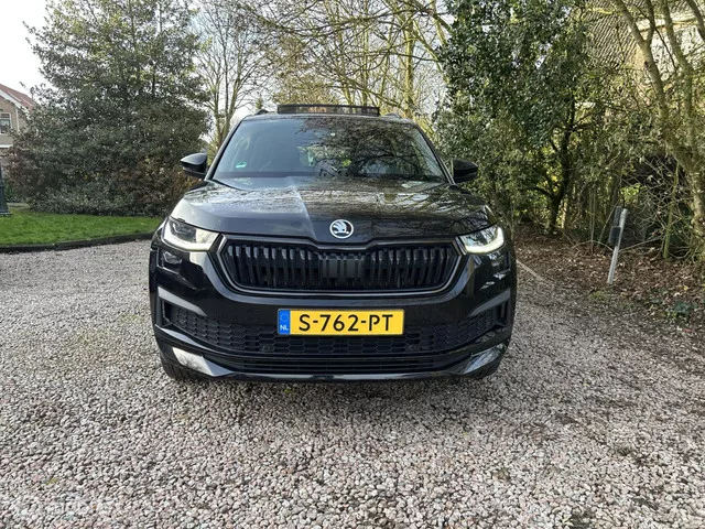 Skoda Kodiaq 1.5 TSI Sportline Business. Kenteken: S-762-PT; Merk: Skoda; Model: Kodiaq; APK tot: 30-03-2027; Tellerstand: 124595 KM; Carrosserievorm: SUV; Aantal deuren: 5; Brandstofsoort: Benzine; Bouwjaar: 2023; Transmissie: Automaat; Kleur: zwart Metallic; Bekleding: Leder/Alcantara; Kleur interieur: zwart; Motorinhoud: 1498 cc; Aantal cilinders: 4; Motorcode: DPC; Vermogen: 110 kW / 150pk; Ledig gewicht: 1496 kg; Max. trekgewicht: 1800 kg; Aantal zitplaatsen: 5; Verbruik: 7 l/100 km; BTW/Marge: BTW aftrekbaar, de prijs is inclusief BTW; Lengte: 470 cm; Breedte: 188 cm; Aantal sleutels: 2; Onderhoudshistorie aanwezig: Dealer onderhouden; Motorrijtuigenbelasting: € 182 - 201 per kwartaal; Emissieklasse: Euro 6. Comfort. Boordcomputer; Cruise control; Regensensor. Exterieur. Achterruitwisser; Buitenspiegel(s) automatisch dimmend; Buitenspiegels elektr. met geheugen; Buitenspiegels elektrisch inklapbaar; Buitenspiegels elektrisch verstel- en verwarmbaar; Buitenspiegels in...
