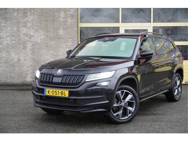 ŠKODA Kodiaq Automaat met de zeer luxe aanwezige opties als Lichtmetalen velgen | Led dagrijverlichting | Led koplampen | Led achterlichten | Keyless entry | Parkersensoren | Elektrische trekhaak | Elektrische achterklep | Verwarmd voorruit | Achteruitrijcamera | App-Connect | Dashboard verlichting | Navigatiesysteem | Virtual cockpit | Canton Audio Systeem Luxe | Climate control | Cruise control | Elektrische bestuurderstoel met geheugen | Sportstoelen | Verwarmde voorstoelen | Verwarmd stuurwiel | Zwart hemel | Extra getint glas. 7 versn., Automaat; Modeljaar: 2019; Voorwielaandrijving; 110 kW; 250 Nm; 4 cilinders; 1.498cc; Gewicht: 1.481kg; Laadvermogen: 708kg; GVW: 2.189kg; Max. trekgewicht: 1.800kg; LxBxH: 480x188x169cm; Wielbasis: 279cm; 58l tank; 0-100 km/h: 9,8s; Topsnelheid: 198km/u; Interieur: zwart, Leder/alcantara; 5 zitplaatsen; 5,9 l/100km; 7,2 l/100km; 5,2 l/100km; 165 g/km CO₂; Energielabel B; Euro 6; Dealer onderhouden (onderhoudsboekjes aanwezig); Aantal eigenaren:...