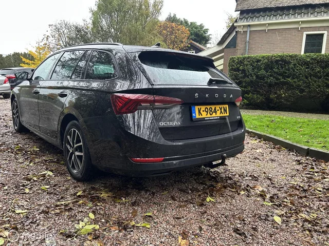 Skoda Octavia Combi 1.0 e-TSI Business Edition Plus 1 eig. Kenteken: K-984-XN; Merk: Skoda; Model: Octavia Combi; APK tot: 31-03-2027; Tellerstand: 180295 KM; Carrosserievorm: Station; Aantal deuren: 5; Brandstofsoort: Benzine; Bouwjaar: 2021; Transmissie: Automaat; Kleur: zwart Metallic; Bekleding: Stof; Kleur interieur: antraciet; Motorinhoud: 999 cc; Aantal cilinders: 3; Motorcode: DLA; Vermogen: 81 kW / 110pk; Ledig gewicht: 1253 kg; Max. trekgewicht: 1300 kg; Aantal zitplaatsen: 5; Verbruik: 4.3 l/100 km; BTW/Marge: BTW aftrekbaar, de prijs is inclusief BTW; Lengte: 469 cm; Breedte: 183 cm; Aantal sleutels: 2; Onderhoudshistorie aanwezig: Ja; Motorrijtuigenbelasting: € 199 - 217 per kwartaal; Emissieklasse: Euro 6. Pakket: Travel pakket. Actieve noodgeval assistent; Cruise control adaptief met Stop&Go en stuurhulp; Rijstrooksensor met correctie; Verkeersbord detectie. Comfort. Regensensor. Exterieur. Achterruitwisser; Buitenspiegel(s) automatisch dimmend; Buitenspiegels...