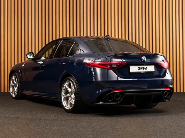 Alfa Romeo Giulia 2.9 V6 Quadrifoglio. Car No: 3003. - Marge auto. - Dealer onderhouden. - Inruil mogelijk. Uitgevoerd in Blu Olandese (AR343) met zwart leder. Voorzien van: 26704 - Adaptive cruisecontrol (Adaptive Cruise Control). 24999 - AUX-IN-aansluiting. 1505 - Comfort-pakket. 35508 - Keyless-Entry. 36392 - Portiergrepen buiten met LED-verlichting. 24751 - Bluetooth incl. Audio-Streaming. 25640 - Infotainment-systeem: UConnect 3D Nav (Kleurenbeeldscherm 8,8"). 24050 - Radio-ontvangst Digital (DAB). 35508 - Keyless-Entry. 33303 - Lendensteun Stoel voor links. 49741 - Lichtmetalen velgen voor/achter: 8,5x19 / 10x19 (Classico). 25172 - Smartphone Interface (Apple CarPlay & Android Auto). 32612 - Stoelen voor electr. verstelbaar (8-voudig). 29500 - Stoelverwarming voor. 32825 - Stoelen voor met electr. verstelbare Zijwangen. 33303 - Lendensteun Stoel voor links. 69005 - Stuur verwarmbaar. 23103 - Zijruiten achter en Achterruit verduisterd. 19000 - Koplampsproeiers...