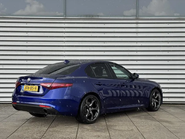 6 airbags, 7'' TFT-kleurendisplay in instrumentenpaneel, 8,8'' infotainmentsysteem Alfa Connect (3D-Navigatie, radio, MP3, AUX, Bluetooth) met MultiPoint touchscreen en Rotary Control, 18'' lichtmetalen velgen Sprint, 19'' lichtgewicht lichtmetalen velgen Performance, ABS met EBD, ASR, MSR, ESC, DST, vertrekhulp voor hellingen, Achteruitrijcamera met dynamische hulplijnen, Active Blind Spot Assist, Adaptive Cruise Control, Alfa Connect Services, Alfa DNA Pro-rijdynamiekregeling, All season banden, Aluminium afwerking op middenconsole, dashboard en deuren, Aluminium instaplijsten voor, Aluminium sportpedalen en voetsteun, Apple CarPlay, AQS Luchtkwaliteitsbewakingsfunctie airco-systeem, Audiobedieningstoetsen op het stuur, Audiosysteem met 8 speakers, Automatic High Beam, Automatisch dimmende binnenspiegel, Automatisch dimmende buitenspiegel, Automatische airconditioning met twee zones, Badge Sprint, Bi-Xenon koplampen inclusief adaptieve bochtenverlichting (AFS) en koplampsproeiers, Dark Gloss Giulia-badge, Dark Gloss inzetstuk op grille voor, Dark Gloss raamomlijsting, Dark Gloss uitlaatsierstukken, Digitale radio (DAB), Draadloze oplader, Driver Attention Assist, Dubbele uitlaatpijpen, Elektrische parkeerrem, Fix & Go bandenreparatiekit, Forward Collision Warning (FCW), Functionele LED-verlichting, Instapverlichting, Integrated Brake System (IBS), Isofix-bevestigingspunten, Lane Assist, Lane Departure Warning (LDW), LED-achterlichten, Leder, metallic, Met leder bekleed sportstuurwiel, Neerklapbare achterbank met armsteun 40/20/40, Noodremassistentie/Autonomous Emergency Brake (AEB), Parkeersensoren achter, Parkeersensoren voor en achter met display, Pastel lak, Privacy glass - donker getinte ramen vanaf B-stijl, Regen- en lichtsensor, Start&Stop-systeem, Start/Stop-knop op het stuur, Stoelbekleding in stof/leder, TPMS (bandenspanningsmeter), Traffic Sign Recognition, USB-aansluiting achter, Ventilatieroosters achterpassagiers, Versnellingspook met geperforeerd leder, Verwarmbare elektrisch inklapbare buitenspiegels, Vloermatten, Voorruit in warmtewerend glas, Zesvoudig verstelbare voorstoelen, Zwarte remklauwen
