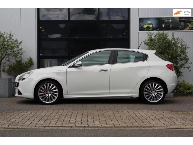 Alfa Romeo Giulietta 1.4 T Turbo Turismo, daar is de volgende alweer, we steken immers niet onder hoeken of banken dat we gek zijn van deze prachtige Guilietta. En bij het zien van dit exemplaar waren we zoals altijd weer bij dit soort auto's op slag verliefd. Uitgevoerd in het Bianco met zwart lederen interieur en rode stiksels, Turbina velgen 18 inch, rode remklauwen, zwarte hemel en verchroomde accenten betreft het een prachtige en vooral sierlijke auto. Niet alleen sierlijk maar ook de perfecte combinatie tussen sportiviteit en comfort, zoals die Italianen dat al jaar en dag in de vingers hebben, het onderscheidende en de fijne reiseigenschappen waren destijds voor vele kopers redenen genoeg om er één aan te schaffen. Helaas 2025, ze worden net als de MiTo niet meer geproduceerd en het ziet er voorlopig niet naar uit dat ze nog terugkomen snik.. Nog even genieten, bij ons kan dat! Dit betreft de 170pk 1.4Turbo motor met de TCT Automaat met dubbele koppeling, een heerlijke...