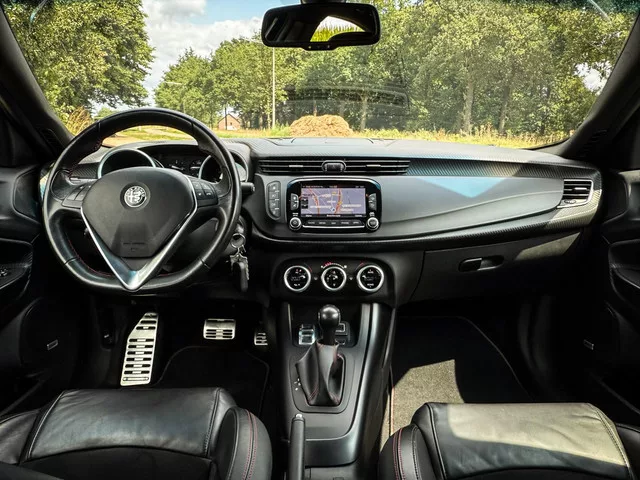 Let op: onze auto’s zijn op afspraak te bezichtigen. Niet alle auto’s passen in onze showroom en kunnen in de opslag staan. Maak een afspraak zodat wij kunnen zorgen dat de auto van uw keuze in onze showroom aanwezig is! Alfa Romeo Giulietta 1.750 TBi Veloce – Italiaanse sportiviteit met verfijnde luxe. Deze Alfa Romeo Giulietta 1.750 TBi Veloce uit augustus 2017 is een krachtige en stijlvolle hatchback die het sportieve DNA van Alfa Romeo volledig tot zijn recht laat komen. Uitgevoerd in een opvallend blauw metallic exterieur met een smaakvol zwart leder/alcantara interieur, straalt deze Giulietta Veloce karakter en klasse uit. Met een kilometerstand van slechts 74.863 km, afkomstig van de eerste eigenaar en perfect onderhouden, is dit exemplaar een zeldzaam goed bewaarde auto met een complete historie. Uitrusting en kenmerken: - 1.750 TBi benzinemotor (240 pk) – krachtige prestaties en directe respons. - Navigatiesysteem & parkeersensoren – comfortabel en veilig onderweg. -...
