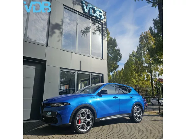 Alfa Romeo Tonale 1.5T MHEV Edizione Speciale MISANO BLU MEMORY STOELVERKOELING HARMAN KARDON KEYLESS CAMERA NAVIGATIE BOMVOL. Alfa Romeo Tonale 1.5T MHEV Edizione Speciale HARMAN KARDON. Kenteken: HLR-53-S; Merk: Alfa Romeo; Model: Tonale; Tellerstand: 21855 KM; Carrosserievorm: SUV; Aantal deuren: 5; Brandstofsoort: Hybride (Elektrisch/Benzine); Bouwjaar: 2023; Transmissie: Automaat; Kleur: blauw; Kleurnaam: MISANO BLU; Bekleding: Leder; Kleur interieur: zwart; Motorinhoud: 1469 cc; Aantal cilinders: 4; Vermogen: 96 kW / 131pk; Ledig gewicht: 1500 kg; Aantal zitplaatsen: 5; Verbruik: 5.8 l/100 km; BTW/Marge: Marge, de BTW is niet aftrekbaar; Aantal sleutels: 2; Onderhoudshistorie aanwezig: Dealer onderhouden. Comfort. Cruise control; Regensensor. Exterieur. Achterspoiler; Buitenspiegel rechts; Buitenspiegels elektrisch verstel- en verwarmbaar; Buitenspiegels elektrisch verstelbaar; Buitenspiegels verwarmbaar; Centrale vergrendeling; Dimlichten automatisch en regensensor; Getint...