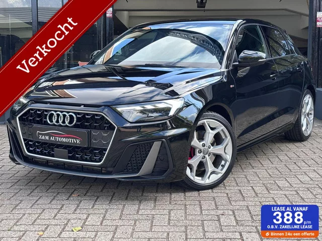 ***RIJKLAAR INC. GARANTIE***. Audi A1 Sportback 40 TFSI S Line Pro Line S. Kenteken: GFN-44-P; Merk: Audi; Model: A1 Sportback; APK tot: 08-07-2026; Tellerstand: 79202 KM; Carrosserievorm: Hatchback; Aantal deuren: 5; Brandstofsoort: Benzine; Bouwjaar: 2019; Transmissie: Automaat; Kleur: zwart; Bekleding: Leder/Stof; Motorinhoud: 1984 cc; Aantal cilinders: 4; Motorcode: DKZ; Vermogen: 147 kW / 200pk; Ledig gewicht: 1235 kg; Aantal zitplaatsen: 5; Verbruik: 6 l/100 km; BTW/Marge: Marge, de BTW is niet aftrekbaar; Breedte: 174 cm; Motorrijtuigenbelasting: € 164 - 179 per kwartaal; Emissieklasse: Euro 6. Comfort. Cruise control; Regensensor. Exterieur. Achterruitwisser; Centrale vergrendeling met afstandsbediening; Getint glas; LED achterlichten; LED koplampen; Lichtmetalen velgen 5-spaaks 18"; Metaalkleur; Parkeersensor voor en achter; Side-skirts; Sportonderstel; Sportvelgen. Infotainment. Audio installatie; DAB; Navigatiesysteem; Radio-CD/MP3 speler; Smartphone integratie; Stuur...