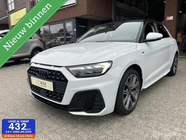 Audi A1 Sportback 30 TFSI 110PK S-LINE LED*CARPLAY*NAVI*PDC*. Merk: Audi; Model: A1 Sportback; APK tot: 07-02-2027; Tellerstand: 37697 KM; Carrosserievorm: Hatchback; Aantal deuren: 5; Brandstofsoort: Benzine; Bouwjaar: 2023; Transmissie: Automaat; Kleur: wit; Motorinhoud: 999 cc; Aantal cilinders: 3; Motorcode: DLA; Vermogen: 81 kW / 110pk; Ledig gewicht: 1105 kg; Aantal zitplaatsen: 5; Verbruik: 4.8 l/100 km; BTW/Marge: Marge, de BTW is niet aftrekbaar; Lengte: 404 cm; Breedte: 174 cm; Motorrijtuigenbelasting: € 139 - 151 per kwartaal; Emissieklasse: Euro 6. Comfort. Cruise control; Regensensor. Exterieur. Achterruitwisser; Andere dakkleur; Buitenspiegels elektrisch inklapbaar; Buitenspiegels elektrisch verstelbaar; Buitenspiegels in carrosseriekleur; Buitenspiegels verwarmbaar; Centrale vergrendeling met afstandsbediening; Dakspoiler; Dimlichten automatisch; Getint glas; LED achterlichten; LED koplampen; Lichtmetalen velgen 17"; Park Distance Control; Parkeersensor achter...