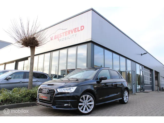 Stoere S-Line uitvoering. Dealeronderhouden. In zeer mooie staat! Audi A1 Sportback 1.4 TFSI S-line 125pk Pano|Led|Navi. Kenteken: JVG-23-B; Merk: Audi; Model: A1 Sportback; APK tot: 31-08-2026; Tellerstand: 133354 KM; Carrosserievorm: Hatchback; Aantal deuren: 5; Brandstofsoort: Benzine; Bouwjaar: 2017; Transmissie: Handgeschakeld; Kleur: zwart Metallic; Bekleding: Leder/Stof; Kleur interieur: zwart; Motorinhoud: 1395 cc; Aantal cilinders: 4; Motorcode: CZC; Vermogen: 92 kW / 125pk; Ledig gewicht: 1080 kg; Max. trekgewicht: 1200 kg; Aantal zitplaatsen: 4; Verbruik: 5.1 l/100 km; BTW/Marge: Marge, de BTW is niet aftrekbaar; Breedte: 175 cm; Aantal sleutels: 2; Onderhoudshistorie aanwezig: Dealer onderhouden; Motorrijtuigenbelasting: € 145 - 158 per kwartaal; Emissieklasse: Euro 6; Bandenmaat voor: 215/40/17; Bandemaat achter: 215/40/17. Comfort. Boordcomputer. Exterieur. Achterruitwisser; Bi-xenon koplampen; Buitenspiegels elektrisch verstelbaar; Buitenspiegels verwarmbaar; Centrale...