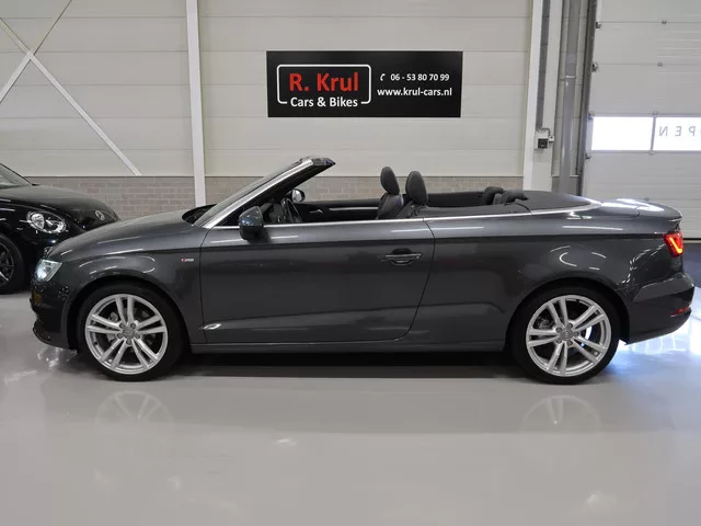 Wij bieden u aan, een bijzonder nette, sportieve en chique 140 pk sterke Audi A3 cabriolet in de kleur Daytonagrijs metallic met S-line interieur en S-Line exterieur. Verwarmde en verlangbare sportstoelen voorzien van half leer, automatische airco (electronic climate control) links/rechts individueel instelbaar, 18 inch sportvelgen, parkeersensoren voor en achter, cruise control, Audi drive select (sportonderstel), multifunctioneel afgevlakt lederen stuurwiel met S-Line logo, mistlampen voor en xenon verlichting. Het onderhoudsboekje is aanwezig. Kijk op onze website voor alle 70 foto's. Wordt geleverd met een nieuwe apk keuring. Welkom bij R. Krul Cars & Bikes. Wij zijn een autobedrijf met ruim 25 jaar ervaring en met passie voor auto's. Onze auto's worden met zorg geselecteerd en gecontroleerd op kwaliteit en aantoonbare onderhoudsgeschiedenis. Wij staan u graag telefonisch te woord op 06-53807099. Maandag t/m vrijdag zijn we open van 09.00 tot 17.30 uur, zaterdag altijd geopend...