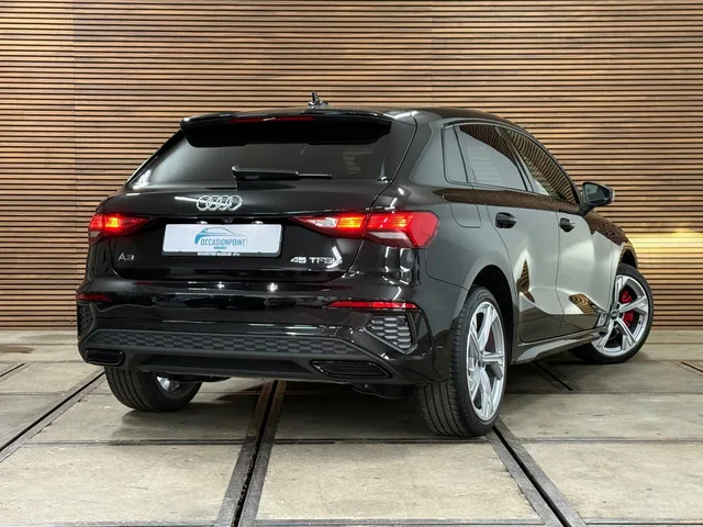Complete Audi A3 Sportback 45 TFSI e S Edition Competition - Deze Plug-In Hybride is voorzien van S-Line exterieur met 18' inch Audi Sport lichtmetalen wielen, S-Line Interieur met luxe half lederen, Alcantara RS -Sportstoelen, S-Line Multifunctioneel Stuurwiel, Ambiente verlichting, Parkeersensoren voor + achter, Parkeercamera, Virtual Cockpit, Navigatiesysteem, Apple en Android Carplay, Cruise Control, Climate Control, Audi Drive Select voor Stuur en Demping, Keyless Start, Schakelflippers aan het Stuur, Soundgenarator. Kortom een volle Audi voor vele plezierige kilometers. 6 versn., Automaat; 4WD; Bandenmaat: 225/40 R18; 180 kW; 4 cilinders; 1.395cc; Gewicht: 1.560kg; Laadvermogen: 515kg; GVW: 2.075kg; Max. trekgewicht: 1.400kg; LxBxH: 434x182x145cm; Wielbasis: 263cm; 0-100 km/h: 6,8s; Topsnelheid: 232km/u; Interieurkleur: zwart; 5 zitplaatsen; 1,4 l/100km; Dealer onderhouden (onderhoudsboekjes aanwezig); APK bij aflevering; Schadevrij; 2 sleutels (2 handzenders); Gereserveerd...