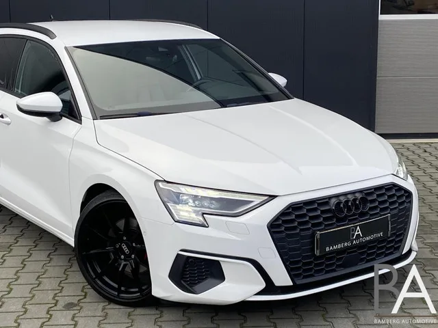 Audi A3 Sportback 40 TFSI e leder|massage|led|carplay. Kenteken: HZS-22-Z; Merk: Audi; Model: A3 Sportback; APK tot: 31-08-2027; Tellerstand: 102980 KM; Carrosserievorm: Hatchback; Aantal deuren: 5; Brandstofsoort: Hybride (Elektrisch/Benzine); Bouwjaar: 2021; Transmissie: Automaat; Kleur: wit; Motorinhoud: 1395 cc; Aantal cilinders: 4; Motorcode: DGE; Vermogen: 110 kW / 150pk; Ledig gewicht: 1535 kg; Max. trekgewicht: 1400 kg; Aantal zitplaatsen: 5; Verbruik: 1.4 l/100 km; BTW/Marge: Marge, de BTW is niet aftrekbaar; Lengte: 434 cm; Breedte: 182 cm; Aantal sleutels: 2; Onderhoudshistorie aanwezig: Dealer onderhouden; Motorrijtuigenbelasting: € 253 - 276 per kwartaal; Emissieklasse: Euro 6. Pakket: Parkeer pakket. Parkeer assistent; Parkeersensor voor. Pakket: LED lichtpakket. Koplampreiniging; Matrix LED koplampen. Comfort. Cruise control; Regensensor. Exterieur. 19'' inch lichtmetalen velgen; Achterruitwisser; Achterspoiler; Aluminium delen exterieur; Buitenspiegels elektrisch...