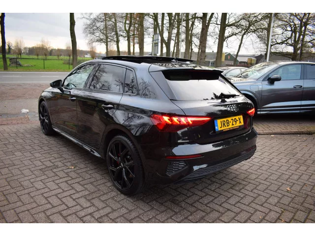 NETTE Audi A3 45 TFSIE AUTOMAAT/ADAPTIEVE CRUISECONTROL/PANORAMA SCHUIF KANTEL DAK/LEDER/NAVIGATIE/MATRIX LED/AIRCO ECC/PDC VOOR+ACHTER/BLUETOOTH/KEYLESS/LMW 18 INCH/ STOEL VERWARMING/USB/APK 30-09-2027/BJ 18-10-2022/ONDERHOUDS HISTORIE EN RESERVE SLEUTEL AANWEZIG. S LINE. TEGEN MEERPRIJS LMW 235/35/19. Met een auto als deze Audi A3 45 TFSI e komt u absoluut goed voor de dag. De krachtige motor geeft deze Audi uitstekende prestaties. Van binnen ziet u een lederen interieur, een stijlvolle uitvoering. Koude start? Niet met de verwarmbare voorstoelen! De sportstoelen zien er niet alleen prachtig uit, maar zijn ook functioneel, zoals u kilometer na kilometer zult merken. Het interieur baadt in daglicht dankzij het elektrisch bediende glazen panoramadak. Xenonverlichting zorgt voor een krachtige en heldere lichtbundel. Ook is de auto voorzien van: 18 inch lichtmetalen velgen, sportinterieur, elektrische handrem, zwarte hemelbekleding, extra getint glas en in delen neerklapbare...