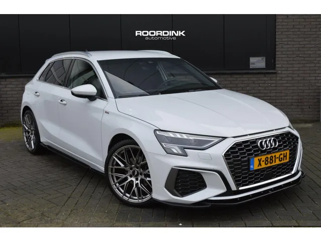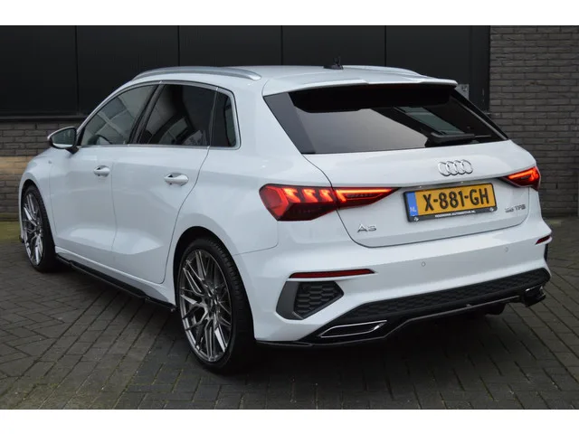 Schitterende Audi A3 Sportback S-Line van bouwjaar 2022. O.a. voorzien van; climate control, adaptieve cruise control, elektrische ramen, elektrisch verstelbare buitenspiegels, infotainmentsysteem, navigatiesysteem, bluetooth, JP-Racing wielen (t.w.v. €1200,-), Maxton Design frontsplitter, side-skirts en diffuser, getint glas, led verlichting, sportstoelen en virtual cockpit. APK is geldig tot 06-2026. Vanzelfsprekend worden reservesleutel en boekjes meegeleverd. 110 kW; 4 cilinders; 1.498cc; Gewicht: 1.295kg; Laadvermogen: 580kg; GVW: 1.875kg; Max. trekgewicht: 1.500kg; Wielbasis: 264cm; 0-100 km/h: 8,4s; Topsnelheid: 224km/u; Interieurkleur: Donkergrijs; 5 zitplaatsen; 4,8 l/100km; 114 g/km CO₂; Euro 6; APK: tot jun. 2026; 2 sleutels (2 handzenders); Wegenbelasting: € 192-€ 211p/kwrt; X-881-GH