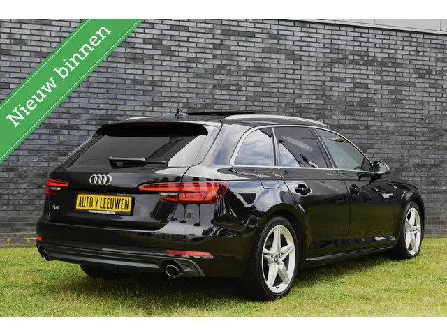 Audi A4 Avant 40 TFSI Sport S line edition mhev PANODAK/MATRIX/VIRTUAL COCKPIT/ETC.! Merk: Audi; Model: A4 Avant; APK tot: 24-12-2026; Tellerstand: 163605 KM; Carrosserievorm: Station; Aantal deuren: 5; Brandstofsoort: Hybride (Elektrisch/Benzine); Bouwjaar: 2018; Transmissie: Automaat; Kleur: zwart; Motorinhoud: 1984 cc; Aantal cilinders: 4; Motorcode: DLV; Vermogen: 141 kW / 192pk; Ledig gewicht: 1480 kg; Max. trekgewicht: 1500 kg; Aantal zitplaatsen: 5; Verbruik: 6 l/100 km; BTW/Marge: Marge, de BTW is niet aftrekbaar; Lengte: 474 cm; Breedte: 184 cm; Motorrijtuigenbelasting: € 241 - 264 per kwartaal; Emissieklasse: Euro 6. Pakket: City pakket. Achteruitrij assistent; Achteruitrijcamera; Dodehoek detectie; Parkeersensor voor. Comfort. Boordcomputer; Cruise control. Exterieur. Aluminium delen exterieur; Buitenspiegels elektr. met geheugen; Buitenspiegels elektrisch inklapbaar; Buitenspiegels elektrisch verstel- en verwarmbaar; Centrale vergrendeling met afstandsbediening; Dakrails...