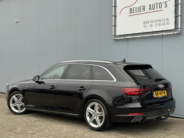 Dit betreft een Audi A4 Avant 2.0 TFSI MHEV Sport S Line Edition Automaat met origineel 134.116 km (NAP) gereden. Deze auto is dealer onderhouden (service uitdraai aanwezig) en de laatste beurt is uitgevoerd bij 127.691 km. Verder is deze Audi voorzien van een distributieketting en wordt geleverd met een nieuwe APK. 7 versn., Automaat; Modeljaar: 2017; 0 kW; 320 Nm; 4 cilinders; 1.984cc; Gewicht: 1.465kg; Laadvermogen: 630kg; GVW: 2.095kg; Max. trekgewicht: 1.500kg; LxBxH: 485x184x146cm; Wielbasis: 282cm; 54l tank; 0-100 km/h: 7,5s; Topsnelheid: 240km/u; 5 zitplaatsen; 5,7 l/100km; 7,2 l/100km; 4,9 l/100km; 130 g/km CO₂; Energielabel B; Euro 6; Dealer onderhouden (onderhoudsboekjes aanwezig); Aantal eigenaren: 2; 2 sleutels (2 handzenders); Wegenbelasting: € 243-€ 268p/kwrt; RK-417-R