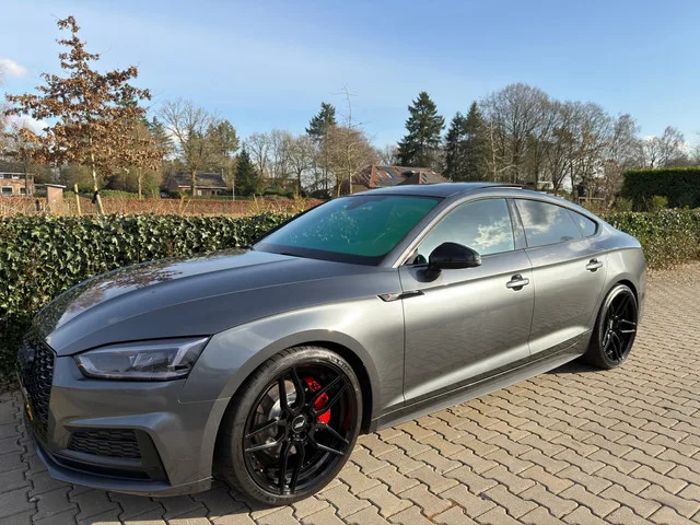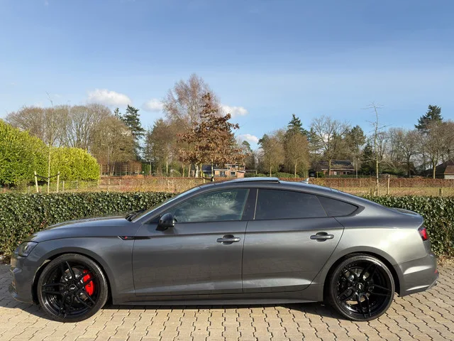 Zeer Dikke en Bom Volle , Sportieve Audi A5 Sportback 2.0 TFSI MHEV Sport S-line Edition , ABT 320PK , Automaat , Panodak / Schakelbare Uitlaat / Led / 20" Lm Velgen. 20" ABT Breedset Velgen. Schakelbare Uitlaat op Afstandbediening. Gechipt naar 320 PK Uitdraai Aanwezig !! **Audi A5 Sportback 2.0 TFSI MHEV Sport S-line Edition**. **Kenteken:** TH423P. Maak kennis met deze prachtige Audi A5 Sportback S-line Edition uit 2018. Een perfecte combinatie van sportiviteit en elegantie. Het stijlvolle grijze exterieur, gecombineerd met lederen bekleding en een elektrisch glazen panoramadak, zorgt ervoor dat deze A5 niet alleen indrukwekkend rijdt, maar ook uitermate fraai oogt. Met een krachtige 2.0 TFSI motor met mild hybrid technologie, brengt hij 185 kW (252 pk) vermogen, een topsnelheid van 250 km/u en een acceleratie van 0 naar 100 in slechts 6,5 seconden. Deze hatchback biedt alles wat je van een premium auto mag verwachten: een volledig digitaal instrumentenpaneel, matrix LED...