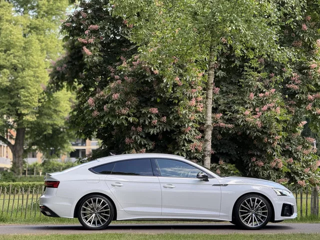 Audi A5 Sportback 35 TFSI S edition Competition / Orig.NL. Kenteken: P-190-RJ; Merk: Audi; Model: A5 Sportback; APK tot: 15-06-2026; Tellerstand: 51400 KM; Carrosserievorm: Hatchback; Aantal deuren: 5; Brandstofsoort: Benzine; Bouwjaar: 2022; Transmissie: Automaat; Kleur: wit; Motorinhoud: 1984 cc; Aantal cilinders: 4; Motorcode: DMS; Vermogen: 110 kW / 150pk; Ledig gewicht: 1485 kg; Max. trekgewicht: 1500 kg; Aantal zitplaatsen: 5; Verbruik: 5.8 l/100 km; BTW/Marge: Marge, de BTW is niet aftrekbaar; Lengte: 476 cm; Breedte: 184 cm; Aantal sleutels: 2; Onderhoudshistorie aanwezig: Ja; Motorrijtuigenbelasting: € 253 - 276 per kwartaal; Fabrieksgarantie tot: 15-06-2026; Emissieklasse: Euro 6. Bijzondere opties & accessoires. Nationale autopas; Origineel Nederlands geleverd; S-Line; Zwarte hemelbekleding. Pakket: Assistentie pakket Parking. Achteruitrijcamera; Hill hold functie; Parkeersensor voor. Comfort. Boordcomputer; Cruise control; Regensensor. Exterieur. Achterspoiler; Aluminium...
