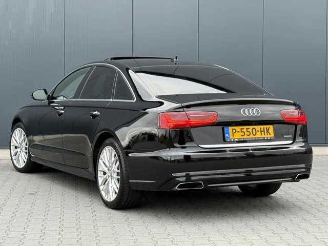 Audi A6 3.0 TFSI Quattro Sport Edition Schuifdak - Leder - Xenon - Facelift. Kenteken: P-550-HK; Merk: Audi; Model: A6 Limousine; APK tot: 29-08-2026; Tellerstand: 189853 KM; Carrosserievorm: Sedan; Aantal deuren: 4; Brandstofsoort: Benzine; Bouwjaar: 2016; Transmissie: Automaat; Kleur: zwart Metallic; Bekleding: Leder; Kleur interieur: bruin; Motorinhoud: 2995 cc; Aantal cilinders: 6; Vermogen: 245 kW / 334pk; Ledig gewicht: 1855 kg; Aantal zitplaatsen: 5; Verbruik: 7.4 l/100 km; BTW/Marge: Marge, de BTW is niet aftrekbaar; Aantal sleutels: 2; Motorrijtuigenbelasting: € 360 - 394 per kwartaal; Emissieklasse: Euro 6. Comfort. Boordcomputer; Cruise control; Regensensor. Exterieur. Bi-xenon koplampen; Buitenspiegel rechts; Buitenspiegels elektrisch inklapbaar; Buitenspiegels elektrisch verstel- en verwarmbaar; Buitenspiegels elektrisch verstelbaar; Centrale vergrendeling met afstandsbediening; Dimlichten automatisch; Elektrisch glazen schuif-/kanteldak; Extra getint glas achter...