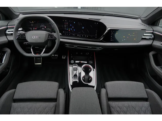 S-Line in-en exterieur. • Stoelbekleding Stof met Rhombus patroon en ‘S’ logo in rugleuning voorstoelen. • Sportstoelen, voor. • Dakbekleding Stof, zwart. • Pedalen en Voetsteun in Roestvrij staal. • Interieurelementen in Stof Cascade, omtrek. • Stuur (Sport/leder – 3-spaaks, boven / afgeplat aan de onderzijde) met Multifunctie en Schakelfunctie. • Optiekpakket zwart (Raamsierlijsten, Spiegelkappen-en deurgrepen in hoogglans zwart). • Dakrailing, zwart. • Achterkant-diffusor. • Bumper Sport-design (S-line). • Sport-Chassis S-Line. • 21’’ lichtmetalen velgen. Verdere opties. • Audio-Navigatiesysteem MMI Experience Plus. • MMI Bijrijders-display. • Combi-instrument digitaal (virtual cockpit plus). • Sound-systeem DSP / Audi Sound-systeem. • Radio-ontvangst digitaal (DAB). • Apple Carplay of Android Auto. • Apps: Google Maps, WhatsApp, Waze, Kaarten, enz. • 360° Rondom camera. • Parkeerhulp plus voor, aan de zijkant en achter, akoestisch en optisch met Omgevingsdisplay. •...