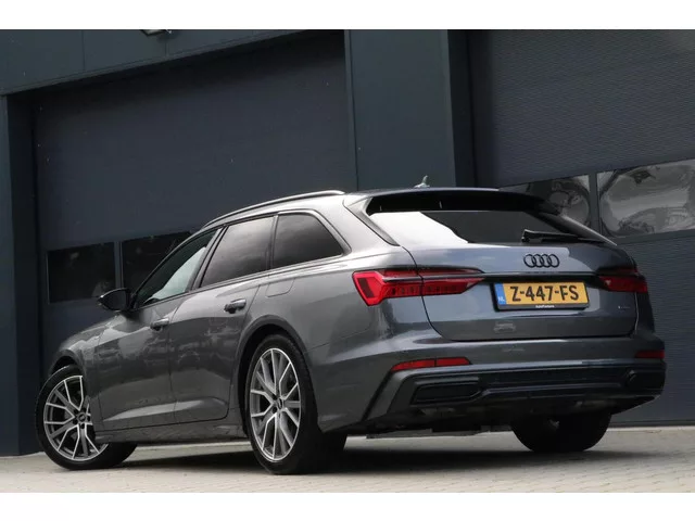 Audi A6 Avant 55 TFSI e 367PK quattro Competition Panodak Bang&Olufsen Sportzetels PrivacyGlass AppleCarplay 20'Inch 105000KM BJ2021. Kenteken: Z-447-FS; Merk: Audi; Model: A6 Avant; APK tot: 08-07-2027; Tellerstand: 104927 KM; Carrosserievorm: Station; Aantal deuren: 5; Brandstofsoort: Hybride (Elektrisch/Benzine); Bouwjaar: 2021; Transmissie: Automaat; Kleur: grijs Metallic; Kleurnaam: DAYTONAGRIJS PARELEFFECT; Bekleding: Leder/Alcantara; Kleur interieur: zwart; Motorinhoud: 1984 cc; Aantal cilinders: 4; Motorcode: DRY; Vermogen: 270 kW / 368pk; Ledig gewicht: 2050 kg; Max. trekgewicht: 2000 kg; Aantal zitplaatsen: 5; Verbruik: 1.9 l/100 km; BTW/Marge: Marge, de BTW is niet aftrekbaar; Lengte: 494 cm; Breedte: 189 cm; Aantal sleutels: 2; Onderhoudshistorie aanwezig: Dealer onderhouden; Motorrijtuigenbelasting: € 277 - 303 per kwartaal; Emissieklasse: Euro 6. Pakket: Keyless pakket. Elektrisch bedienbare achterklep met sensorsturing; Keyless entry. Pakket: Veiligheids pakket. ...