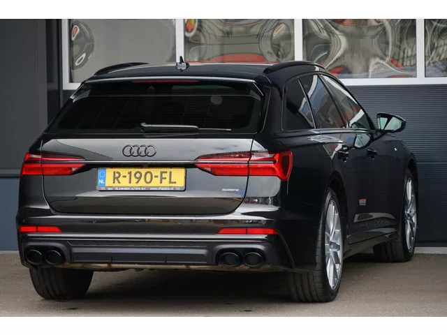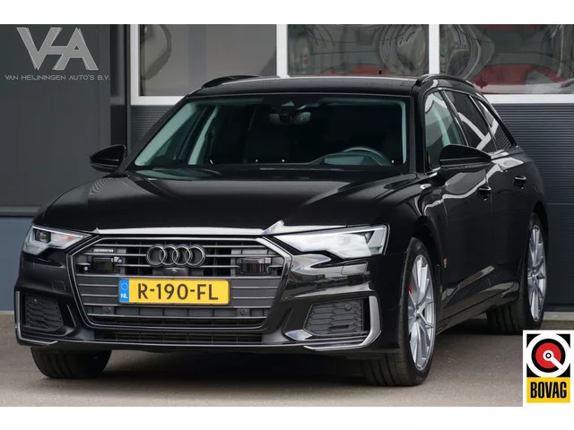 Audi A6 Avant 55 TFSI quattro Sport S line edition, V6, pano, HUD, leder. Kenteken: R-190-FL; Merk: Audi; Model: A6 Avant; APK tot: 13-08-2026; Tellerstand: 71251 KM; Carrosserievorm: Station; Aantal deuren: 5; Brandstofsoort: Benzine; Bouwjaar: 2019; Transmissie: Automaat; Kleur: zwart Metallic; Bekleding: Leder; Motorinhoud: 2995 cc; Aantal cilinders: 6; Motorcode: DLZ; Vermogen: 250 kW / 341pk; Ledig gewicht: 1810 kg; Max. trekgewicht: 2000 kg; Aantal zitplaatsen: 5; Verbruik: 7.2 l/100 km; BTW/Marge: Marge, de BTW is niet aftrekbaar; Breedte: 189 cm; Aantal sleutels: 2; Onderhoudshistorie aanwezig: Ja; Motorrijtuigenbelasting: € 159 - 174 per kwartaal; Emissieklasse: Euro 6. Pakket: Assistentie Pakket. Cruise control adaptief met Stop&Go; File assistent; Rijstrooksensor met correctie. Pakket: Keyless pakket. Elektrisch bedienbare achterklep met sensorsturing; Keyless entry. Comfort. Boordcomputer; Regensensor. Exterieur. Achterruitwisser; Buitenspiegel(s) automatisch dimmend...