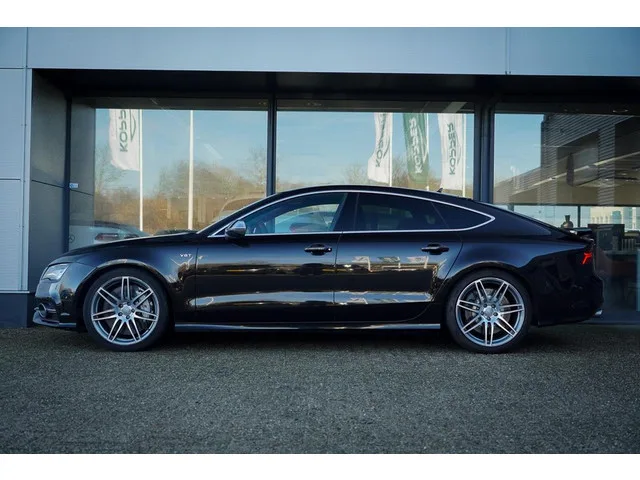 'S' variant, 4-corner air suspension with electronic shock absorption control, 7-speed automatic transmission for four-wheel drive vehicle, 8-cylinder SI engine 4.0 l/309 kW biturbo FSI homogeneous base engine is TV7, 8-cylinder SI engine 4.0 l unit 079.E, 520 A (92 Ah) battery, Activated carbon canister, Adaptive Cruise Control, Alcantara/leather seat covering, Alloy wheels 9J x 20, Alternator 140-210 A, Aluminum exterior mirror housings, Audi AG, Audi exclusive cast aluminium alloy wheels, 8Jx18, 7-twin-spoke design, with 235/40 R 18 tyres (quattro GmbH), Axial and vertical adjustable steering column, Breakaway interior rear view mirror, automatically dimming, Breakdown set, Bright moldings, Camera and/or distance sensor (driver assistance system), Carrier frequency 868 MHz without panic button, Center console, Central control unit, front, Central locking system 'Keyless Entry', ceramic brake, Child seat anchor, front right (ISOFIX), Child seat anchor for child seat system ISOFIX, Component parts set without country-specific design requirement, Control of standard production, Convenience key with sensor-controlled luggage compartment release, Cruise control speed limit system, Customized installation, Dashboard and door trim panel multi-piece, single-color, multi-colored, Disc brakes, front, Disc brakes, rear, Driver's and front passenger air bag with front passenger air bag deactivation, Driving on the right, ECO function, Electric seat adjustment for both front seats, driver's seat with memory feature, Electronic stabilization program (ESP), Emblems, Emission standard EU5 plus, Engine cover, Exterior mirrors: with memory function, electrically adjustable/heated, First aid kit with warning triangle, Flat tire indicator, Four wheel drive, Fresh air intake system with activated charcoal canister, Front and rear floor mats, Front center armrest, Front license plate carrier, Fuel quality 98 RON, Fuel system for SI engine with direct injection (FSI), Fuel tank, Headlamp range adjustment with fixed bending light, Headlight washer system, Increase in initial standard fuel filling, Information kit in German, Input medium for multimedia, Installation differentiation for standard transmission, Installation parts for eight-cylinder engine, Instrument insert with km/h speedometer,clock, tachometer and trip odometer, ISOFIX child seat mounting for passenger seat, Label for central electric German-speaking countries, Labels/plates in English and German, Laminated windshield, Lane departure warning, Leather trimmed multi-function sports steering wheel w/ Tiptronic, LED headlights, LED taillamp assembly, Left-hand drive vehicle, Left exterior mirror: aspherical, Load-through provision, Luggage compartment floor covering, Manually operated doors, MMI® navigation plus with MMI touch®, Mobile phone preparation, Multi-function display/on-board computer, National sales program Germany, Navigation system (MID), No self-collection, No special edition, No special purpose vehicle, standard equipment, Not hot country, Operating permit, alteration, Operating voltage 12V, Parking brake, Passenger car design, Plastic/leather gearshift knob/handle, Platform group class 2, Radio 'HIGH', Rear exhaust tailpipe (standard), Rear seat bench unsplit, backrest split folding, Rear spoiler (type 2), Rear trim panel (ECE), Refrigerant R134a, Reinforced bumpers, Right exterior mirror: aspherical, large viewing field, Scuff plates in door apertures with 'S' badge, Seat belt reminder, electric contact in buckle, Separate daytime running lights NAR, Side and rear windows, Smoking package, Special identification plate for EC for M1 passenger vehicle, Special plates/decals/ safety certificates for Germany, Sportsback, Sports front seats, Standard, Standard, Standard-production quality, Standard battery/alternator capacity, Standard climatic zones, Standard manufacturing sequence, Standard molded headlining, Standard wheel bolts, Start/stop system with regenerative braking, Tie down straps, Tiptronic, Tires 265/35 R20 99Y x1, Tires w/o specification of tire brand, Tool kit and jack, Trailer hitch preparation, Transit coating (type 1), Transit coating film with additional transport protection measures, Tray areas package 1, Trunk lid power closing, Type approval Germany, Type of tire: design 2, Type sign at rear and 'Quattro' nameplates respectively, Vehicle class differentiation 4G0/4G8, Vehicles with special upgrade measures, W/o heat accumulator/auxiliary heating, W/o remote-controlled garage door opener, Wheels of Quattro GmbH, With additional lights (interior lighting), With extended safety system (Pre-Crash Basic and Front), With front and rear view camera system, With noise cancellation (ANC Active Noise Cancellation), Without 'Multimedia' in vehicle, Without additional front underbody guard, Without additional side body covers (stone guard), Without additional tires, Without alternative drive module, Without auxiliary/parking heater, Without cargo area, Without CD changer, Without cd enhancing underbody panel, Without determination of weight categoryfor front axle, Without determination of weight categoryfor rear axle, Without dual-view display, Without front passenger seat adjustment from the rear, Without front spoiler, Without ignition/starter switch locking system, without steering lock, Without leather, Without nameplate set (without model designation), Without preparation for VTS (vehicle tracking system), Without receiver (car phone), Without roof rails/roof load rack, Without seat ventilation/massage seat, Without special body measures, Without thermal insulation insert (cup holder)