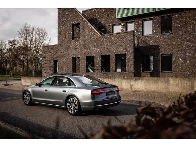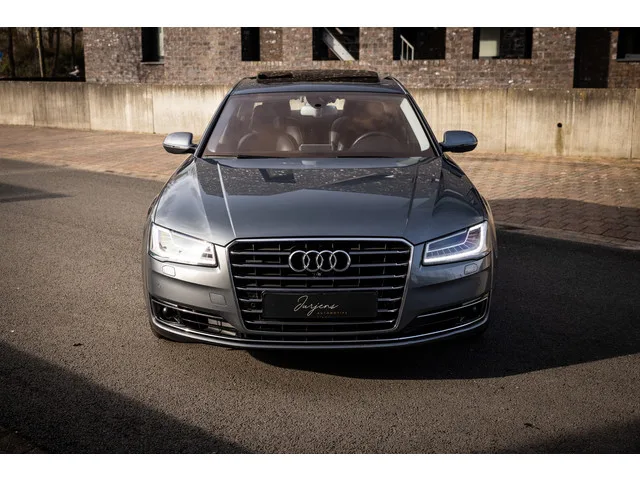 | Verlengde wielbasis | Enkele stoelopstelling achter | Rear Seat entertainment | Stoelmassage 4x | Stoelventilatie 4x | Stoelverwarming 4x | Apple CarPlay / Android Auto | BOSE audiosysteem | Full LED Matrix koplampen | Adaptive Cruise control | Lane Assist | Side Assist | 360° Camera | MMI Touch | Bluetooth audio | DAB+ | Schuif-/ kanteldak | Essenhout sierlijsten | Soft-Close portieren | Audi Exclusive lederpakket | Ambientverlichting | 20” 10-arm originele Audi velgen Iridium | Elektrische kofferdeksel | Elektrische trekhaak | Facelift | 2014 | 330.329 km | EUR 21.450 |. Audi A8 4.2 TDI Quattro Pro Line+ Lang (385pk). De Audi A8 – zeker in de generatie – is een limousine op het hoogste niveau. Absolute high-end afwerking en kwaliteit verzorgd tot in de kleinste details. Specifiek deze facelift generatie heeft ons hart reeds gestolen. Toch staat de beleving bij de lengte van de optielijst. Nu kon je in 2014 behoorlijk ver gaan bij Audi. Deze A8 is zo’n exemplaar. Zeldzaam luxe...