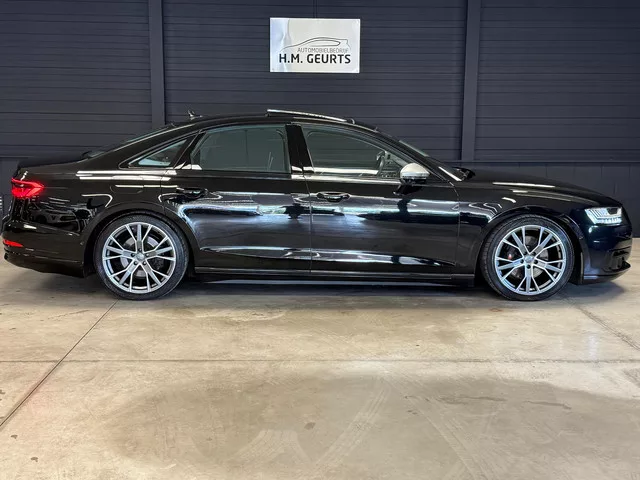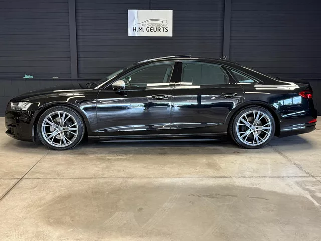 Audi A8 met werkelijk alle opties!! 4x Stoelkoeling. 4x Massage. Mee sturende achteras. Pano dak. Matrixx lichten. 20 Inch. Auto in tadeloze staat met slechts 93.000dkm! U bent van harte welkom voor een proefrit, neem gerust een kijkje op www.autogeurts.nl voor ons huidig occasionaanbod.Info 0475-481784 of 06-54930624 Ruben Geurts.Vakgarage Geurts in echt, voormalig Hyundai dealer in de regio en tevens u vertrouwd adres voor een gebruikte auto! 8 versn., Automaat; Modelreeks: okt. 2017 - feb. 2022; 4WD; 210 kW; 600 Nm; 6 cilinders; 2.967cc; Gewicht: 1.950kg; Wielbasis: 300cm; 72l tank; 0-100 km/h: 5,9s; Topsnelheid: 250km/u; Interieurkleur: Zwart; 5 zitplaatsen; 5,7 l/100km; Energielabel C; Dealer onderhouden (onderhoudsboekjes aanwezig); Onderhouden volgens voorschriften; APK bij aflevering; Algemene staat: goed; 2 sleutels (2 handzenders); Geen wegenbelasting. Inmiddels bestaat ons gerenommeerde Automobielbedrijf Hen Geurts al meer dan 50 jaar, een zeldzame maar vermeldenswaardige...