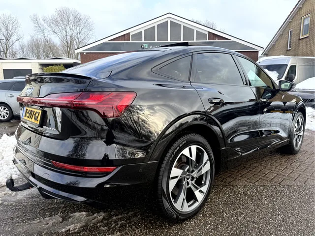 In uitstekende staat verkerende Audi E-Tron Sportback 55. zéér complete S Edition. Origineel Nederlandse Auto. Nationale AutoPas. inruil is mogelijk. 1 versn., Automaat; Modeljaar: 2020; 4WD; 300 kW; 664 Nm; Gewicht: 2.495kg; Laadvermogen: 675kg; GVW: 3.170kg; Max. trekgewicht: 1.800kg; LxBxH: 501x198x167cm; Wielbasis: 293cm; Accu: 95kWh, Type lithium-ion; Accu laden: Type 2, 3-fasen, 11 kW, 54 km/u, 8 uur en 38 minuten; Accu snelladen: Combined Charging System, 150 kW, 459 km/u, 0 uur en 30 minuten; Actieradius: 446 km; 0-100 km/h: 5,7s; Topsnelheid: 200km/u; Interieur: zwart, Leder/alcantara; 5 zitplaatsen; 22,7 kWh/100km; 0 g/km CO₂; Energielabel A; Dealer onderhouden (onderhoudsboekjes aanwezig); Aantal eigenaren: 3; APK: tot dec. 2026; Wegenbelasting: € 365-€ 399p/kwrt; K-597-GZ