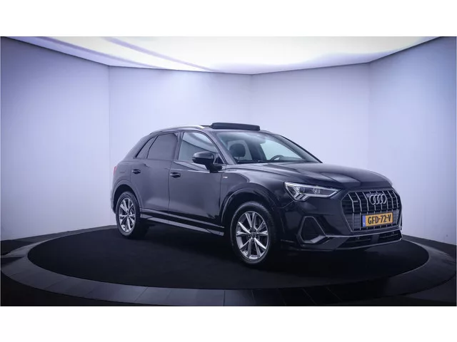 Alle technologie in de Audi Q3 is er op gericht om uw rit veilig en gemakkelijk te laten verlopen. Dit mooie, dealeronderhouden exemplaar uit 2019 heeft 64627 kilometer op de teller staan. De S-Line styling geeft deze auto een bijzonder karakter en staat voor sportiviteit en exclusiviteit. Een viercilinder benzinemotor en een automatische transmissie zorgen voor de uitstekende prestaties van deze auto. Solide op nat asfalt en regenklinkers, maar net zo onverschrokken op de onverharde weg: de vierwielaandrijving trekt u overal doorheen. Daglicht valt vrij binnen door het elektrisch bediende glazen panorama dak. Wat ook met één klik opent, is de elektrisch bedienbare achterklep. De sportstoelen zien er niet alleen prachtig uit, maar zijn ook functioneel, zoals u kilometer na kilometer zult merken. Ook is de auto voorzien van: 18 inch lichtmetalen velgen, LED koplampen, sportonderstel, halflederen bekleding, warmtewerend glas en aluminium dakrailing. Omdat goed geïnformeerd rijden...