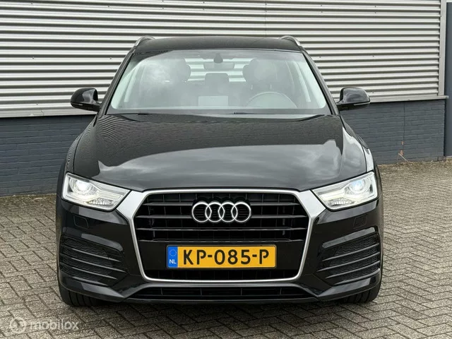 Audi Q3 1.4 TFSI CoD Sport S Line AUTOMAAT, TREKHAAK. Kenteken: KP-085-P; Merk: Audi; Model: Q3; APK tot: 08-01-2026; Tellerstand: 181093 KM; Carrosserievorm: SUV; Aantal deuren: 5; Brandstofsoort: Benzine; Bouwjaar: 2017; Transmissie: Automaat; Kleur: zwart; Motorinhoud: 1395 cc; Aantal cilinders: 4; Motorcode: CZE; Vermogen: 110 kW / 150pk; Ledig gewicht: 1380 kg; Max. trekgewicht: 1800 kg; Aantal zitplaatsen: 5; Verbruik: 5.9 l/100 km; BTW/Marge: Marge, de BTW is niet aftrekbaar; Lengte: 439 cm; Breedte: 183 cm; Aantal sleutels: 2; Onderhoudshistorie aanwezig: Ja; Motorrijtuigenbelasting: € 216 - 235 per kwartaal; Emissieklasse: Euro 6. Pakket: Audi Connect. Smartphone integratie; WiFi. Pakket: Navigatie pakket. Navigatiesysteem full map + hard disk; Spraakbediening. Comfort. Boordcomputer; Cruise control; Regensensor. Exterieur. Aluminium delen exterieur; Buitenspiegels elektrisch verstel- en verwarmbaar; Buitenspiegels in carrosseriekleur; Centrale vergrendeling met...