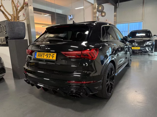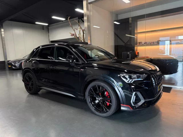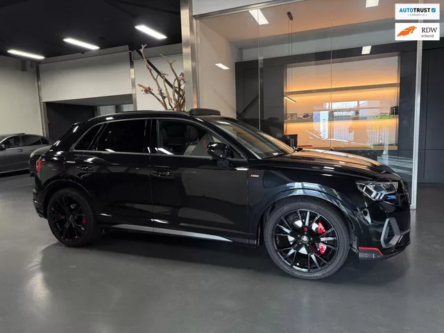 Unieke Audi Q3 35 TFSI S line Voorzien van een RSQ3 Pack. - Volledige onderhoudshistorie aanwezig. - Verkeert in zeer nette staat. - Prijs is inc. 1 jaar garantie / wij rekenen geen afleverkosten. - Black package / zwarte details. - Sportuitlaatsysteem met verstelbare klep & afstandsbediening. Belangrijke optie's: - Panorama dak. - Led verlichting. - Achteruitrijcamera. - Sfeerverlichting interieur meerdere kleuren. - Adaptieve cruise control. - Lane assist. - Dode hoek detectie. - 20 inch velgen met rode remklauwen. - Rode gordels. - Stoelverwarming. - Parkeersensoren voor en achter. - Carbon sierelement voorzijde. - S line interieur half leder. - Electrische kofferklep. - Getint glas achterzijde. - RSQ3 Diffuser. Voorwielaandrijving; 110 kW; 4 cilinders; 1.498cc; Gewicht: 1.470kg; Laadvermogen: 600kg; GVW: 2.070kg; Max. trekgewicht: 1.800kg; Wielbasis: 268cm; 0-100 km/h: 9,4s; Topsnelheid: 205km/u; Interieur: Zwart, Leder/alcantara; 5 zitplaatsen; 5,9 l/100km; 131 g/km CO₂;...