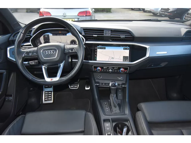 VRAAGPRIJS IS EEN MEENEEM PRIJS , VOOR € 28999 WORDT DE AUTO AFGELEVERD MET ONDERHOUDSBEURT VOLGENS SCHEMA, NIEUWE APK EN 6 MAAND GARANTIE . Dit is een auto die is ontworpen voor uw comfort. Deze Audi Q3 is van het bouwjaar 2021. Met de S-Line styling mag deze auto zeker gezien worden. De krachtige benzinemotor van deze auto is gekoppeld aan een automatische transmissie. U zult maar een handje tekort komen bij het inladen... dan is de elektrisch bedienbare achterklep een uitkomst. En wat een heerlijk vrij gevoel geeft dat elektrisch bediende glazen panorama dak! Een weldaad voor u en uw bijrijder: deze Audi Q3 heeft verwarmbare voorstoelen. Rijden met pit? Geen punt! De sportstoelen geven steun en stevigheid! Tot de uitrusting van deze Audi behoren ook 19 inch lichtmetalen velgen, LED koplampen, warmtewerend glas, zwarte hemelbekleding, in delen neerklapbare achterbank en LED-achterlichten. Ervaar de wonderen van de digitale mobiliteitswereld waarbij alles wat u wenst...