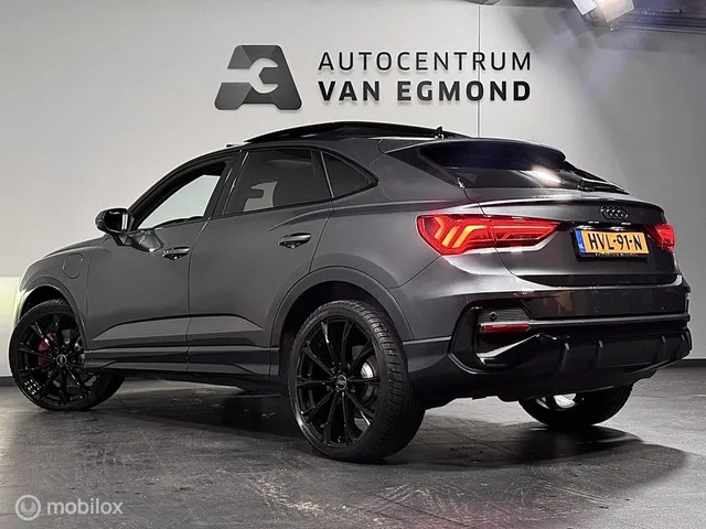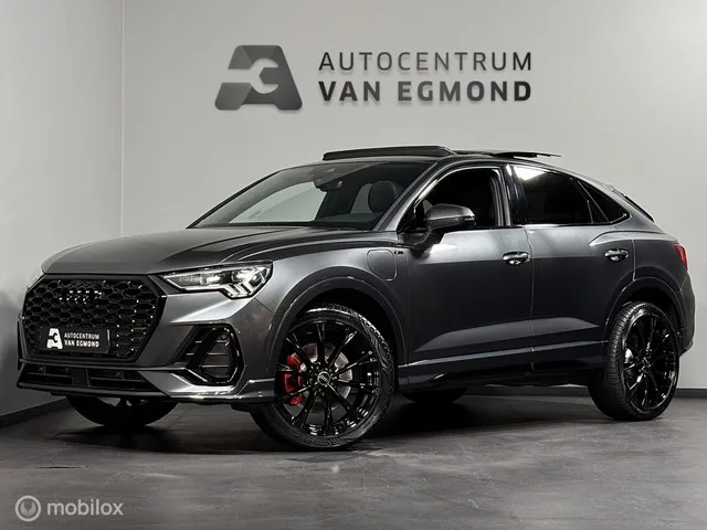 Audi Q3 Sportback 45 TFSIe 2X S-LINE | PANO | B&O | VOL! Kenteken: HVL-91-N; Merk: Audi; Model: Q3 Sportback; APK tot: 30-11-2026; Tellerstand: 87742 KM; Carrosserievorm: SUV; Aantal deuren: 5; Brandstofsoort: Hybride (Elektrisch/Benzine); Bouwjaar: 2021; Transmissie: Automaat; Kleur: grijs Metallic; Bekleding: Leder/Stof; Kleur interieur: zwart; Motorinhoud: 1395 cc; Aantal cilinders: 4; Motorcode: DGE; Vermogen: 180 kW / 245pk; Vermogen verbrandingsmotor: 110 kW; Vermogen elektromotor: 70 kW; Ledig gewicht: 1715 kg; Max. trekgewicht: 1400 kg; Aantal zitplaatsen: 5; Verbruik: 1.6 l/100 km; BTW/Marge: BTW aftrekbaar, de prijs is inclusief BTW; Lengte: 450 cm; Breedte: 184 cm; Aantal sleutels: 2; Onderhoudshistorie aanwezig: Ja; Motorrijtuigenbelasting: € 307 - 335 per kwartaal; Emissieklasse: Euro 6. Comfort. Cruise control; Regensensor. Exterieur. Adaptief demping systeem; Buitensp.elektr.inklap en aut. dimmend; Buitenspiegels elektrisch verstel- en verwarmbaar; Centrale...