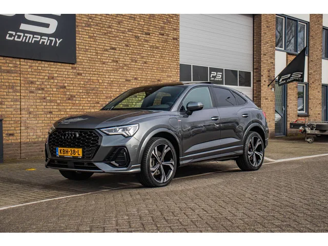 Audi Q3 Sportback 45 TFSI e S-Line, BTW, 1e eig. Dealer O.H. Pano, Half Leder, Sonos, 360 view, Memory, ACC, Ambient, Keyless, DAB. Audi Q3 Sportback 45 TFSI e S-Line, BTW, 1e eig. Dealer O.H. Kenteken: KBH-38-L; Merk: Audi; Model: Q3 Sportback; APK tot: 31-07-2027; Tellerstand: 50506 KM; Carrosserievorm: SUV; Aantal deuren: 5; Brandstofsoort: Hybride (Elektrisch/Benzine); Accucapaciteit: 13 kWh; Bouwjaar: 2022; Transmissie: Automaat; Kleur: grijs; Kleurnaam: Daytona Grau; Bekleding: Leder/Stof; Kleur interieur: antraciet; Motorinhoud: 1395 cc; Aantal cilinders: 4; Motorcode: DGE; Vermogen: 180 kW / 245pk; Ledig gewicht: 1715 kg; Max. trekgewicht: 1400 kg; Aantal zitplaatsen: 5; Verbruik: 1.6 l/100 km; BTW/Marge: BTW aftrekbaar, de prijs is inclusief BTW; Lengte: 456 cm; Breedte: 185 cm; Aantal sleutels: 2; Onderhoudshistorie aanwezig: Dealer onderhouden; Motorrijtuigenbelasting: € 307 - 335 per kwartaal; Emissieklasse: Euro 6; Bandenmaat voor: 255/40/20; Bandemaat achter: 255/40/20...