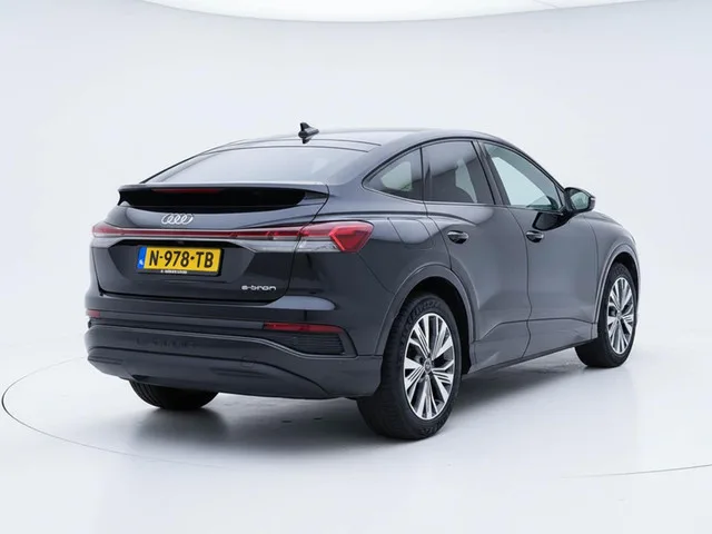 Audi Q4 Sportback e-tron 40 Launch Edition Advanced Plus 77 kWh | SOH 90% | Sportstoelen | Adaptive cruise | Trekhaak. Kenteken: N-978-TB; Merk: Audi; Model: Q4 Sportback e-tron; APK tot: 29-12-2027; Tellerstand: 154376 KM; Carrosserievorm: SUV; Aantal deuren: 5; Brandstofsoort: Elektrisch; Accucapaciteit: 77 kWh; Huur of koop accu: Koop; Accuconditie: 90 %; Aantal laadfasen: 3-fasen; Geschikt voor snelladen: Ja; Laadvermogen snelladen: 125 kW; Bouwjaar: 2021; Transmissie: Automaat; Kleur: zwart Metallic; Kleurnaam: Mythoszwart metallic; Bekleding: Stof; Kleur interieur: zwart; Motorcode: EBJ; Vermogen: 150 kW / 204pk; Ledig gewicht: 2020 kg; Max. trekgewicht: 1000 kg; Aantal zitplaatsen: 5; BTW/Marge: BTW aftrekbaar, de prijs is inclusief BTW; Lengte: 459 cm; Breedte: 187 cm; Aantal sleutels: 2; Onderhoudshistorie aanwezig: Dealer onderhouden; Motorrijtuigenbelasting: € 93 - 103 per kwartaal; Emissieklasse: Euro Z. Exterieur. Buitenspiegels elektrisch verstel- en verwarmbaar...