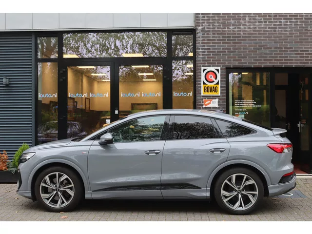 Dealeronderhouden Q4 Sportback met de zeer krachtige 50 221kW/300pk motor in combinatie met de Quattro 4-wiel aandrijving. De sportieve S edition uitvoering met het S-Line exterieur en het Black Optiek pakket. Daarnaast voorzien van zeer veel opties, o.a.: 20" Audi Sport lichtmetalen velgen, MMI Plus navigatiesysteem, Virtual Cockpit Plus, elektrisch bedienbare achterklep, automatisch dimmende binnenspiegel, originele achteruitrijcamera, stoelverwarming, DAB radio en een adaptieve cruise control. Deze Q4 wordt geleverd inclusief 12 maanden BOVAG garantie, zonder meerprijs. 1 versn., Automaat; Modelreeks: aug. 2021 - dec. 2023; 4WD; 220 kW; 460 Nm; Gewicht: 2.115kg; Laadvermogen: 600kg; GVW: 2.715kg; Max. trekgewicht: 1.200kg; LxBxH: 459x187x162cm; Wielbasis: 277cm; Actieradius: 478 km; 535/1.460 laadruimtel; 0-100 km/h: 6,2s; Topsnelheid: 180km/u; Interieur: Donker grijs, Stof; 5 zitplaatsen; 184,1 kWh/100km; 0 g/km CO₂; Energielabel A; Dealer onderhouden (onderhoudsboekjes...