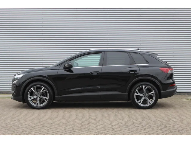 Audi Q4 e-tron 35 Launch edition 55 kWh Carplay/20 inch. Kenteken: N-473-GV; Merk: Audi; Model: Q4 e-tron; APK tot: 29-10-2026; Tellerstand: 79989 KM; Carrosserievorm: SUV; Aantal deuren: 5; Brandstofsoort: Elektrisch; Bouwjaar: 2021; Transmissie: Automaat; Kleur: zwart Metallic; Kleurnaam: Mythos Zwart metallic; Bekleding: Stof; Kleur interieur: zwart; Motorcode: EBJ; Ledig gewicht: 1865 kg; Max. trekgewicht: 1000 kg; Aantal zitplaatsen: 5; BTW/Marge: Marge, de BTW is niet aftrekbaar; Lengte: 459 cm; Breedte: 187 cm; Aantal sleutels: 2; Motorrijtuigenbelasting: € 251 - 275 per kwartaal; Emissieklasse: Euro Z. Comfort. Cruise control. Exterieur. Buitenspiegels elektrisch verstel- en verwarmbaar; Buitenspiegels in carrosseriekleur; Dimlichten automatisch en regensensor; Elektrisch bedienbare achterklep; Extra getint glas achter; LED koplampen; Metaalkleur; Parkeersensor achter; Parkeersensor voor; Parkeersensor voor en achter; Sportvelgen. Infotainment. Audio installatie...