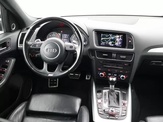 Origineel Nederlandse SQ5 diesel met de 3.0 TDI V6 313 PK motor, Quattro automaat, Zwart/zwart dus Phantomzwart pareleffect exterieurkleur met zwart volledig leder sportinterieur met verlengbaar zitvlak, Bang & Olufsen premium sound, Stoelverwarming, Panorama schuif/kanteldak, Xenon koplampen, Privacy glass, Climate control met links/rechts gescheiden temperatuur, Zwarte hemelbekleding, Keyless-entry en keyless-drive, 20 inch lichtmetalen velgen, Bluetooth telefoon met audiostreaming, Elektrische stoelverstelling en elektrische lendesteun, 4 uitlaten, Zwarte grille, raamlijsten en dakrailing,  Parkeersensoren voor + achter, Schakelflippers. . Iedere werkdag geopend van 08.00 tot 20.00 uur en zaterdag van 09.00 tot 17.00 uur. De door ons genoemde communicatieadviesprijzen zijn inclusief onvermijdbare kosten benodigd voor levering van de auto. Optionele pakketten en-/of uitrusting zijn altijd een keuze van de consument en worden tegen meerprijs geleverd. Voor meer foto's van dit...