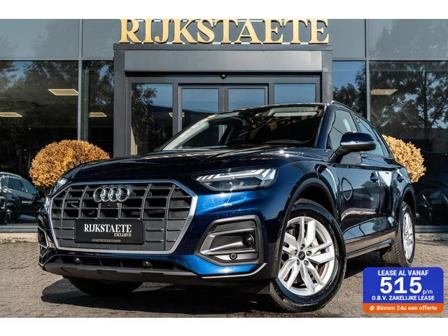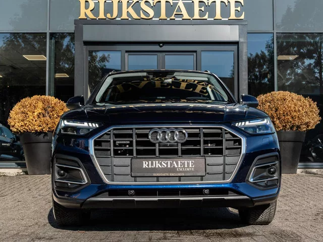 Audi Q5 50 TFSI e Pro Line|MEMORY|360°|CARPLAY|INCL BTW. Merk: Audi; Model: Q5; APK tot: 10-07-2027; Tellerstand: 58587 KM; Carrosserievorm: SUV; Aantal deuren: 5; Brandstofsoort: Hybride (Elektrisch/Benzine); Bouwjaar: 2021; Transmissie: Automaat; Kleur: blauw Metallic; Bekleding: Stof; Kleur interieur: zwart; Motorinhoud: 1984 cc; Aantal cilinders: 4; Motorcode: DRY; Vermogen: 220 kW / 300pk; Ledig gewicht: 2050 kg; Max. trekgewicht: 2000 kg; Aantal zitplaatsen: 5; Verbruik: 1.8 l/100 km; BTW/Marge: BTW aftrekbaar, de prijs is inclusief BTW; Lengte: 468 cm; Aantal sleutels: 2; Onderhoudshistorie aanwezig: Dealer onderhouden; Motorrijtuigenbelasting: € 279 - 309 per kwartaal; Emissieklasse: Euro 6. Comfort. Boordcomputer; Cruise control; Regensensor. Exterieur. Achterruitwisser; Adaptief demping systeem; Aluminium delen exterieur; Buitenspiegel(s) automatisch dimmend; Buitenspiegels elektr. met geheugen; Buitenspiegels elektrisch verstel- en verwarmbaar; Buitenspiegels elektrisch...