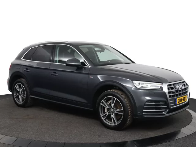 Keurige Audi Q5 50 TFSIe quattro ProLine S-Line. - Adaptieve cruisecontrol. - 1/2 Lederen interieur. - Stoelverwarming. - Door de vorige eigenaar uit Duitsland geïmporteerd. Plug-in hybride; 7 versn., Automaat; 4WD; Bandenmaat: 235/55 R19; 185 kW; 4 cilinders; 1.984cc; Gewicht: 2.005kg; Laadvermogen: 615kg; GVW: 2.620kg; Max. trekgewicht: 1.750kg; LxBxH: 466x189x166cm; Wielbasis: 282cm; Accu: 14kWh; Accu laden: Type 2, 1-fase, 7.4 kW; 0-100 km/h: 6,1s; Topsnelheid: 239km/u; 5 zitplaatsen; 2,2 l/100km; 31,333333333333 kWh/100km; 49 g/km CO₂; Energielabel A; Euro 6; Onderhoudsboekjes aanwezig; APK: tot jun. 2026; 2 handzenders; Wegenbelasting: € 387-€ 423p/kwrt; Beschikbare afleverpakketten: 2. Pakket A (€ 495); 3. Pakket B (€ 795); 4. Pakket C (€ 995); 6. Pakket D (€ 1.995); GBX-83-X