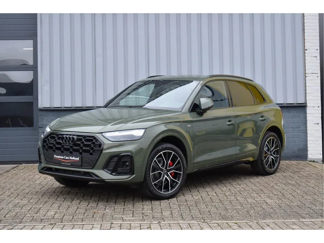 12-2022 Audi Q5 50e Tfsi S-Line 299 Pk Black Edition in de unieke kleur District Groen Metallic met 72431 km DLR Onderhouden Opties: Matrix Koplampen (zandlopers) S-Line Int/Ext Pakket Oled Achterlichten Black Optik Pakket Elektrisch Verstelbare Sportstoelen met Memory Sfeerverlichting in Kleur Instelbaar Apple Carplay Dodehoek Detectie ACC Adaptieve Cruise Control Spiegels Elektrisch Inklapbaar Zwarte Hemel DAB Radio Bluetooth Telefoon Head-Up Display Navigatie MMI Full Map Lane Assistent Virtual Cockpit Stuurverwarming 360 Camera Leder/Alcantara Zonneschermen Achter Getint Glas Trekhaak Origineel Wegklapbaar Elektrische Achterklep Stoelverwarming 20 Inch Audi Sportvelgen. Auto verkeert in nieuwstaat, Volledig dealer onderhouden, Afkomstig van 1e eigenaar, Geen schade verleden, Ingekocht bij Audi AG, Alle keuringen toegestaan, Laatste onderhoudsbeurt gehad op 10-2-2026 bij 72431 km, Direct leverbaar JXF-18-H. Internet meeneemprijs €42950.-. Prijs op basis van inruil/garantie...