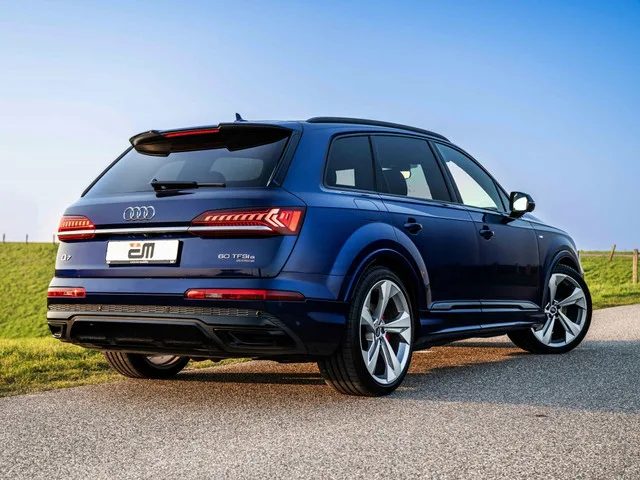 Deze Audi Q7 60 TFSI e is een luxe en krachtige SUV die stijl en efficiëntie perfect combineert. Volgens schema onderhouden en afkomstige van de 1e eigenaar. In het elegante Navarra Blue Metallic krijgt de Q7 een sportieve en chique uitstraling die prachtig verandert met het licht. Dankzij de plug-in hybride aandrijving rijdt hij stil en efficiënt elektrisch in de stad, terwijl hij op langere ritten volop kracht en comfort biedt. Het gecombineerde vermogen bedraagt maar liefst 462 Pk. Binnenin geniet je van een ruim, hoogwaardig afgewerkt interieur met moderne digitale technologie. De wegklapbare trekhaak maakt hem bovendien extra praktisch. - Welkom bij exclusive-mobility Benelux. Wij zijn op afspraak geopend! Naast onze exclusieve voorraad, bemiddelen wij zowel bij aankoop van uw nieuwe auto, als bij de verkoop van uw huidige auto. De betreffende Audi wordt verkocht uit naam van een vaste relatie. Bij exclusive-mobility bieden wij verschillende inruil- en betalingsmogelijkheden...