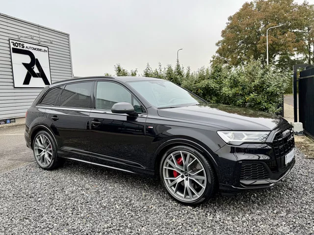 Audi Q7 55 TFSIe Quattro S-Line 2021 Zwart Metallic ** PLUG IN HYBRIDE! **. Rots Automobielen biedt aan een goed onderhouden Q7 uit het jaar 2021. Wagen verkeerd in een nette staat en is voorzien van een volledig voertuigcheck incl reinigingsbeurt! Dealer onderhouden voertuig die in zeer nette staat verkeerd. Showroomprijs 49.950 Euro. LET OP! WAGEN IS IN PRIVE GEBRUIK EN IS ALLEEN OP AFSPRAAK TE BEZICHTIGEN! Plug-in hybride; 8 versn., Automaat; Modeljaar: 2020; 280 kW; 600 Nm; 6 cilinders; 2.995cc; Gewicht: 2.450kg; Wielbasis: 300cm; 75l tank; 0-100 km/h: 5,9s; Topsnelheid: 240km/u; Interieurkleur: zwart; 5 zitplaatsen; 3,2 l/100km; Dealer onderhouden (onderhoudsboekjes aanwezig); APK bij aflevering; 2 sleutels (2 handzenders); Autoplus-Garantie; 6 maanden garantie; 15.000 km garantie; Wegenbelasting: € 476-€ 526p/kwrt