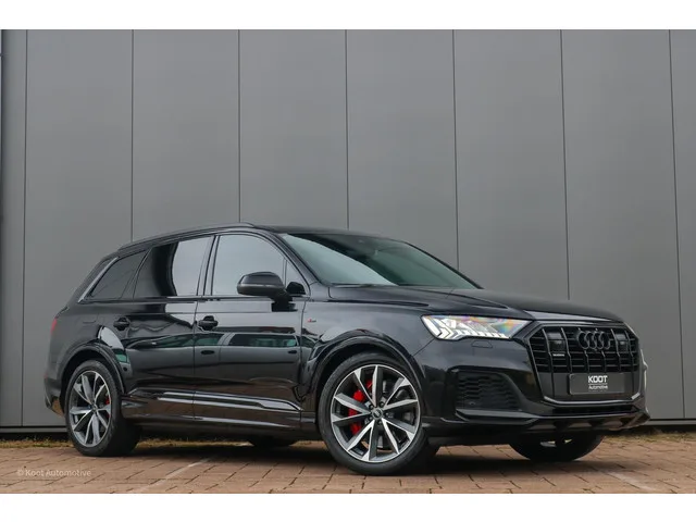Audi Q7 60 TFSI e Competition in absolute topconfiguratie met exclusieve opties en krachtige uitstraling... Audi Q7 60 TFSI e Quattro Competition | RS-Seat | B&O | Matrix | Trekhaak | Glascoating. Kenteken: JVG-98-H; Merk: Audi; Model: Q7; APK tot: 12-11-2027; Tellerstand: 167000 KM; Carrosserievorm: SUV; Aantal deuren: 5; Brandstofsoort: Hybride (Elektrisch/Benzine); Accucapaciteit: 18 kWh; Bouwjaar: 2020; Transmissie: Automaat 8; Kleur: zwart Metallic; Kleurnaam: Mythosschwarz Metallic; Bekleding: Leder; Kleur interieur: zwart; Interieurnaam: Valcona leder RS-sportstoelen Plus met honingraatstiksel, massage, ventilatie en geheugen; Motorinhoud: 2995 cc; Aantal cilinders: 6; Motorcode: DCB; Vermogen: 339 kW / 462pk; Ledig gewicht: 2435 kg; Max. massa voertuig: 3035 kg; Max. trekgewicht: 3500 kg; Aantal zitplaatsen: 5; Verbruik: 3.2 l/100 km; BTW/Marge: Marge, de BTW is niet aftrekbaar; Lengte: 506 cm; Breedte: 197 cm; Hoogte: 166 cm; Aantal sleutels: 2; Onderhoudshistorie aanwezig:...