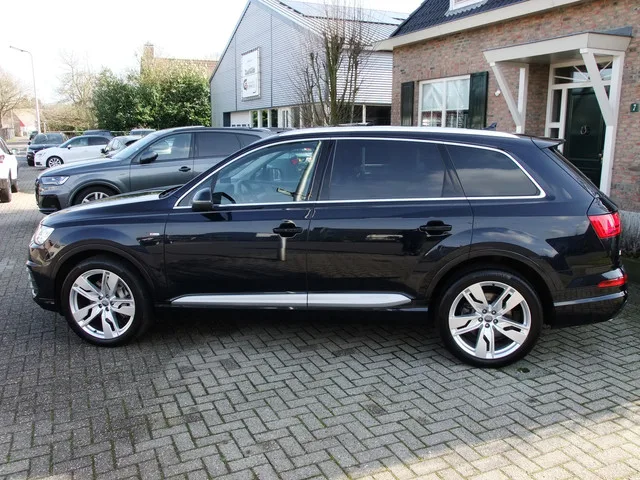 Keurig nette Audi Q7. Meer informatie: Transmissie: 8 versnellingen, Automaat; Modeljaar: 2015; Vierwielaandrijving; Vermogen: 246 kW (334 PK); Koppel: 440 Nm; Aantal cilinders: 6; Motorinhoud: 2.995 cc; Ledig gewicht: 2.005 kg; Laadvermogen: 905 kg; GVW: 2.910 kg; Max. trekgewicht: 2.800 kg (ongeremd 750 kg); LxBxH: 517 x 197 x 174 cm; Wielbasis: 299 cm; Tankinhoud: 85 liter; Acceleratie (0-100): 6,3 s; Topsnelheid: 250 km/u; Interieurkleur: zwart; 7 zitplaatsen; Gemiddeld brandstofverbruik: 7,9 l/100km (1 op 12,7); Brandstofverbruik in de stad: 9,6 l/100km (1 op 10,4); Brandstofverbruik op de snelweg: 6,9 l/100km (1 op 14,5); CO₂-uitstoot: 183 g/km; Energielabel: C; Emissieklasse: Euro 6; Dealer onderhouden (onderhoudsboekjes aanwezig); Eerste eigenaar; APK gekeurd tot jul. 2026; 2 sleutels (2 handzenders); Motorrijtuigenbelasting: € 387 - € 423 per kwartaal; vanaf € 698 p/m (financial lease, 48 maanden); informeer naar de mogelijkheden en voorwaarden; Referentienummer: SH-812-P