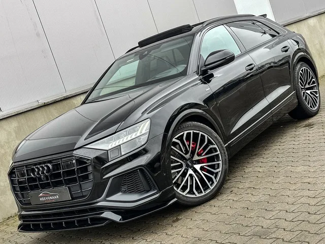 Audi Q8 55tfise Hybrid, Werkelijk afgeladen vol kwa opties. Bijzonderheden en optie: 22inch nieuwe velgen met nieuwe banden. Nightvision. SQ8 diffuser uitlaat. Softclose. 360Graden camera met topview. Rode s-line remklauwen. Elektrische trekhaak. Luchtvering. Verwarmd stuur. Adaptieve cruise controle. B&O geluid installatie. Rs- stoelen. Head up display. Dodehoek assistent. Automatisch inparkeren. Rs-spoiler kofferbak. Front lip spoiler. Stand kachel. Black optic. Zwarte logo´s. Privacy glas. Elektrische kofferklep met voetsensor. Keyless go. Key less entry. Kofferbak rolhoes. Led koplampen en achterlichten. Matrix achterlichten. Elektrische verstelbare stoelen. Stoel verwarming. Stoel koeling. Stoel massage. Gescheiden klimaat controle. Sfeerverlichting meerkleuren. Virtual cockpit. Car play. Kachel achterin bedienbaar. Panorama dak. Drive select. STAAT VAN DE AUTO: deze q8 beschikt over de juist opties die er zijn te bestellen , recent nog nieuwe service beurt gehad, alle sleutels...