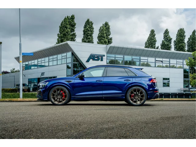 ABT Sportsline Nederland heeft een hele dikke Audi Q8 TFSIe te koop. Deze Navarra blauwe Q8 is een echte eye-catcher met de ABT bodykit, ABT GR23 matt racing gold velgen, ABT Carbon fenders, verlaging en de ABT Power S motorupgrade. Af-fabriek zijn een hele rits heerlijke opties aangevinkt zoals S-sportstoelen met rode stiksels, uitgebreid leder pakket, carbon exterieur pakket, carbon interieur pakket, panorama dak en nog veel meer! ABT Upgrades: - ABT Front skirt in two tone gespoten. - ABT Rear skirt in two tone gespoten. - ABT Dakspoiler in two tone gespoten. - ABT Power S upgrade naar ca 465pk/ 510Nm. - ABT GR23 in Matt Racing Gold (ABT Exclusive). - ABT Carbon fender inserts. - ABT verlagingsmodule. Fabrieksopties: - Navarra blauw metallic. - S-sportstoelen in Valcona leder incl. rode Audi Sport stiksels. - Assistentiepakket parkeren (360 graden camera, inparkeer assistent). - Audi side assist. - Audi smartphone interface. - Adaptieve luchtvering. - Afgevlakt sportstuur. - B&O...