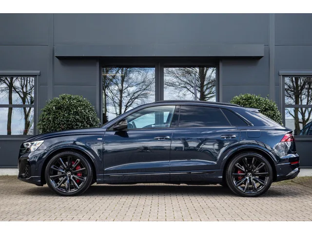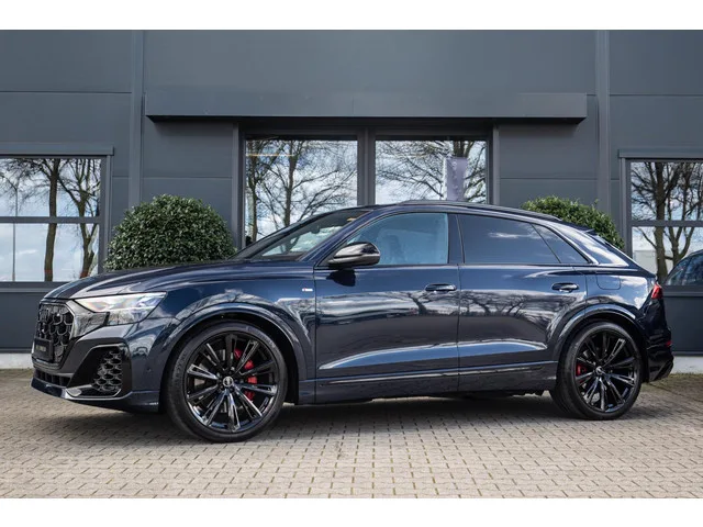 Deze prachtige Audi Q8 60e Hybride facelift, o.a. voorzien van de volgende fabrieksopties: QQ2 sfeerverlichtingspakket plus. PBY Assistentiepakket Plus met Park Assist plus op afstand. VT5 Dorpellijsten met aluminium inzetstukken voor en achter, verlicht, met "S"-logo vooraan. 1D9 Trekhaak inclusief aanhangerassistentie. 6XL Buitenspiegels, elektrisch verstelbaar, verwarmd en inklapbaar, automatisch. dimmen, met geheugenfunctie. 7Y1 Zijassistentie met uitstapwaarschuwing en kruispuntassistentie achteraan. 6FJ Buitenspiegelbehuizingen in zwart. 3FU Glazen panoramisch dak. 8IZ HD matrix LED-koplampen met Audi-laserlicht. QR9 Cameragebaseerde verkeersbordherkenning. 8SC digitale OLED-achterlichten. 4ZP Zwart Stylingpakket plus. 5J1 Dakrandspoiler inclusief centraal hoog gemonteerd remlicht. QL5 Zonwerend glas, getint. VW0 Akoestisch glas voor deur- en zijruiten. 4GR voorruit met klimaatcomfort/akoestische beglazing, draadloos verwarmd. QV3 DAB. 9VS Bang & Olufsen 3D...